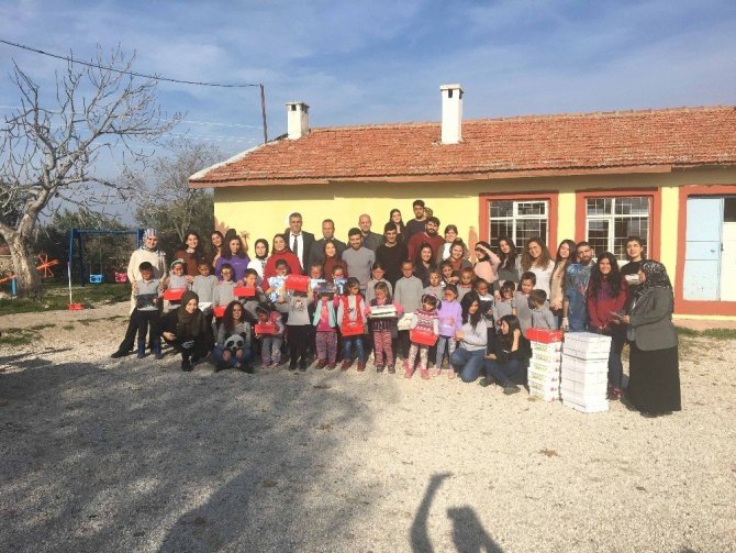 Manisa Celal Bayar Üniversitesi öğrencileri, "Mutlu Kanatlar" projesi kapsamında düzenledikleri kermesten elde ettikleri gelirle Düzlen İlkokulu öğrencilerini sevindirdi.