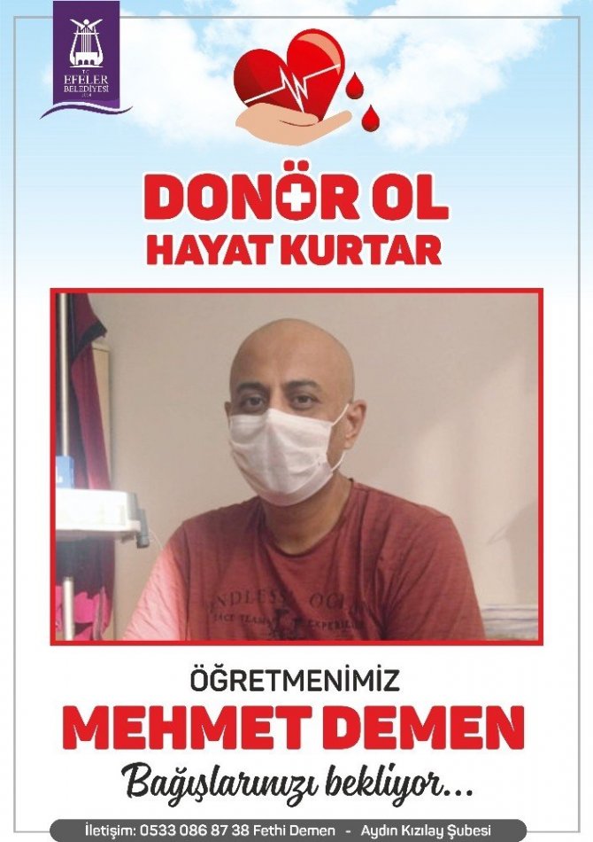 İzmir’de görev yapan Aydınlı öğretmen Mehmet Demen’in lösemi teşhisi konulmasının ardından Efeler Belediye Başkanı M. Fatih Atay’ın çağrısıyla bir kampanya başlatıldı.