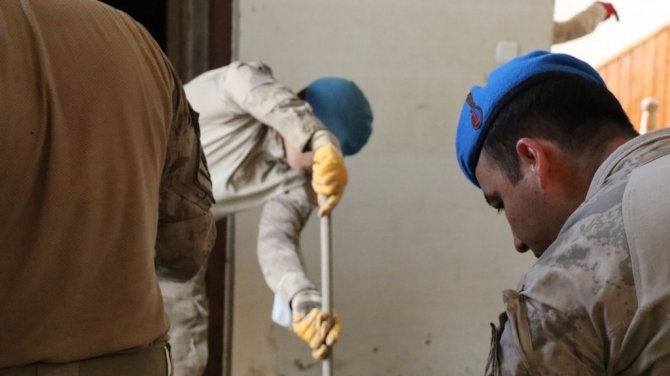 Mehmetçik bu kez camiyi Cuma namazına yetiştirmek için kolları sıvadı