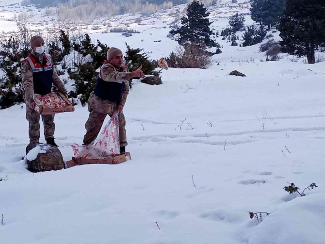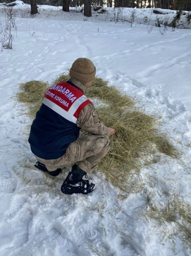 Çetin kış şartları nedeniyle yiyecek bulmakta zorlanan yaban hayvanları için doğaya yem bırakıldı.