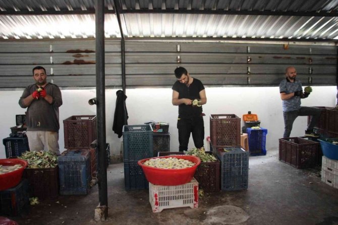 "Tarladan gelen enginarlar usta eller tarafından soyuluyor"