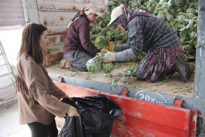 Sabah saatlerinde enginar işçileri ile birlikte tarlaya gelerek özenle enginarları toplayan Mürşide Menderes, "Aydın'ın Efeler ilçesi Gölhisar Mahallesi'nde yaklaşık 5 bin hektarın üzerinde enginar ekimi yapılıyor. Bu mahallenin neredeyse tamamı geçimini enginardan sağlıyor. Babam da uzun süre enginar üreticiliği yaptı. Erkek kardeşim de bu işi babamdan devralarak enginar üretimi yapıyor. Hep enginar ile iç içeydim ve yıllardır severek tüketiyorum. Üniversite öğrenimimin ardından devlet memurluğuna başladım. Ancak bu iş her zaman aklımdaydı ve sevdiğim, bildiğim işi yapmak için harekete geçtim. Çalıştığım kurumdan ücretsiz izin alarak bu işe başladım. Sağ olsun eşim de bana çok büyük destek oluyor. Hasat dönemlerinde sabahın erken saatlerinde tarlaya gelerek enginarları topluyoruz. Sonra bu enginarlar işletmemize gidiyor. Orada da soyularak çanağını çıkartıyoruz. Çanak enginar olarak hazırlıyoruz" dedi.