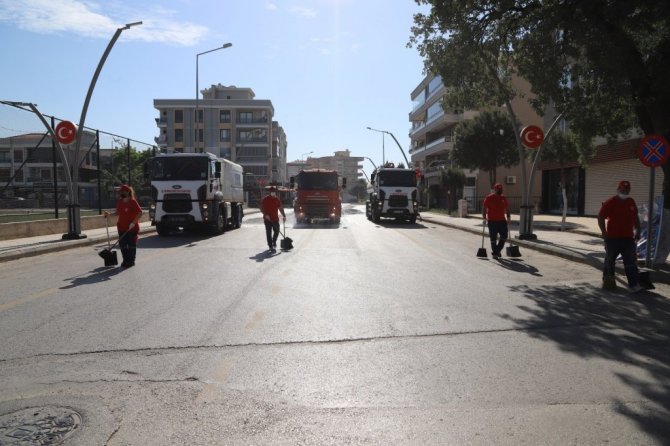 Çalışmalarla ilgili bilgi veren Menderes Belediye Başkanı Mustafa Kayalar, "Salgın sürecinin başından itibaren sürdürdüğümüz çalışmalarımız tam kapanma sürecinde de devam ediyor. Temizlik işleri müdürlüğümüze bağlı ekiplerimiz tarafından Ramazan Bayramı öncesi ilçemizin cadde ve sokaklarında temizlik çalışması yapıldı. Titizlikle yürüttüğümüz çalışmalarımıza ara vermeden devam edeceğiz. Daha sağlıklı bir ortam için hizmetlerimizi sürdüreceğiz" dedi.