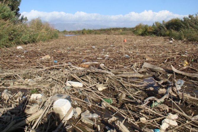 Menderes’te biriken çöpler, tarihi köprüyü tehdit ediyor