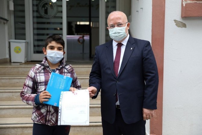 Menteşe Belediye Başkanı Bahattin Gümüş, Covid-19 pandemisi nedeniyle eğitimlerine evlerinden devam etmek zorunda kalan öğrencilere başkanlık binası...