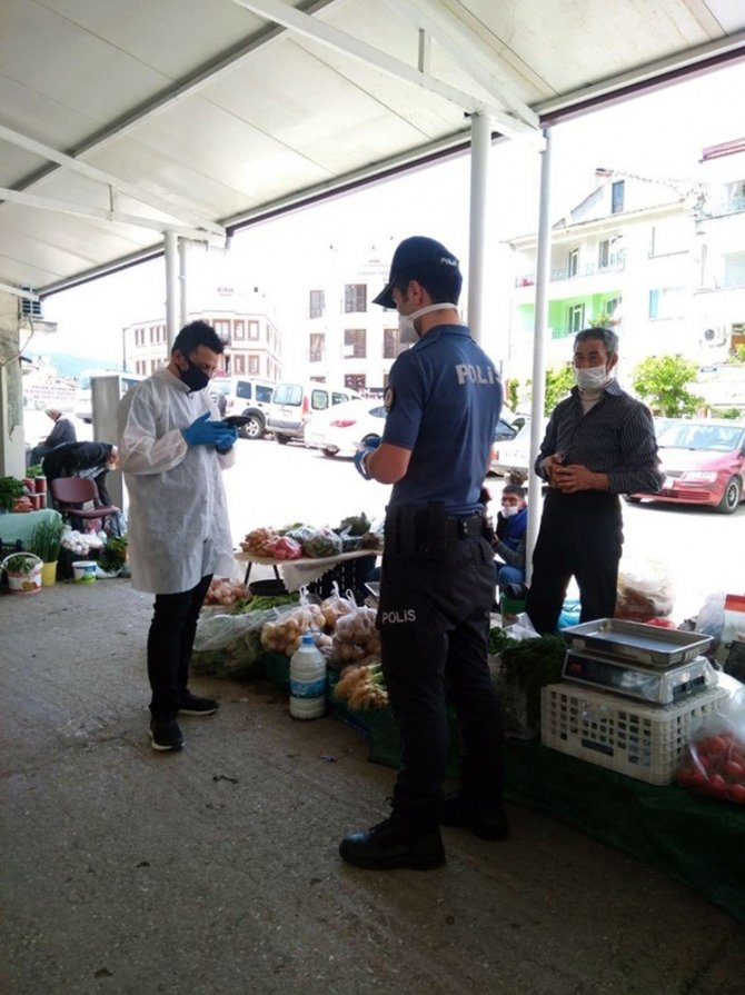 Pazar alışverişine gelen vatandaşlarla ekipler tek tek görüşerek kendilerini bilgilendirme yapılıyor. Vatandaşların Pazar alışverişi esnasında sosyal mesafeyi korumaları, maske takmaları ve zorunlu olmadıkça evlerinden dışarıya çıkmamaları konusunda günboyu uyarı yapılıyor.