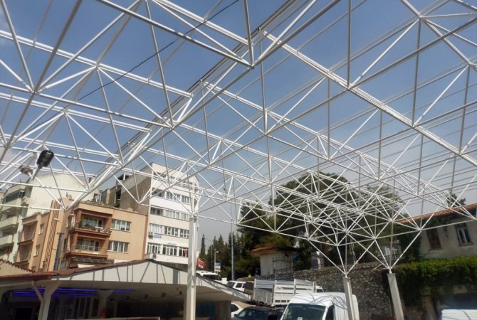 Başkan Gümüş, "Pazar yeri yenileme çalışmalarımız kapsamında pazar yerimizin yıpranan, eskiyen ve kullanım ömrünü tamamlayan çatısını da yeniliyoruz. Yenilenen çatı aşırı ısınmaya karşı mukavemet göstermesi için beyaz renkte olacak. Uzay çatı olarak bilinen sisteme sahip olacak çatıda ayrıca yağmur olukları da yer alacak. Böylece aşırı yağışlarda herhangi bir çökme ve su baskınının da önüne geçilecek. Çalışmalar tamamlandığında pazar yerimiz daha modern ve güvenli bir halde halkımıza ve üreticilerimizin hizmetinde olacak" diye konuştu.