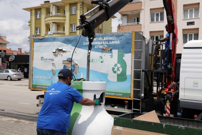 Yüzde yüz geri dönüşebilen tek madde olan cam, Menteşe'de çöpe değil, cam kumbaralarına atılıyor.