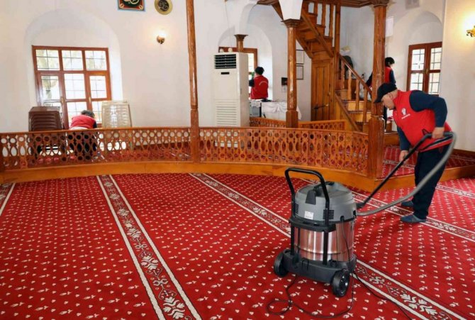 Menteşe Belediyesi Ramazan ayına sayılı günler kala cami temizlik uygulamasına hız verdi.