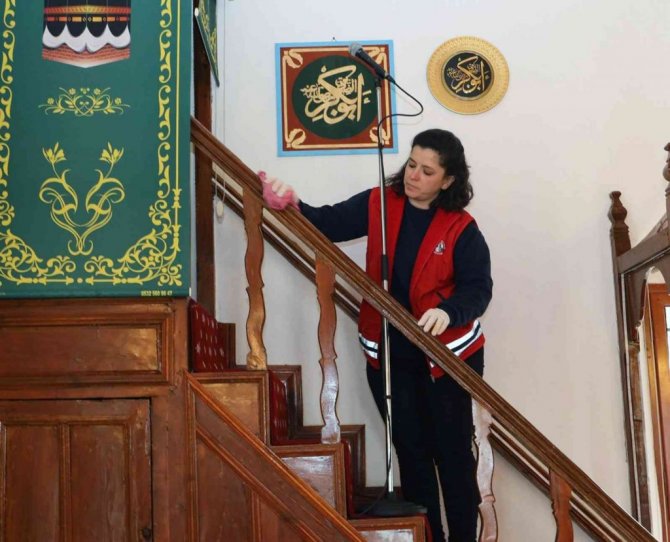 Menteşe Belediyesi Ramazan ayına sayılı günler kala cami temizlik uygulamasına hız verdi. İbadethanelerin temizliğini düzenli olarak yapan belediyenin cami temizlik ekibi cami içlerinde halıları, kapıları, ayakkabılıkları, pencereleri, mihrap, kürsü ve minberine kadar köşe bucak her yeri temizliyor.