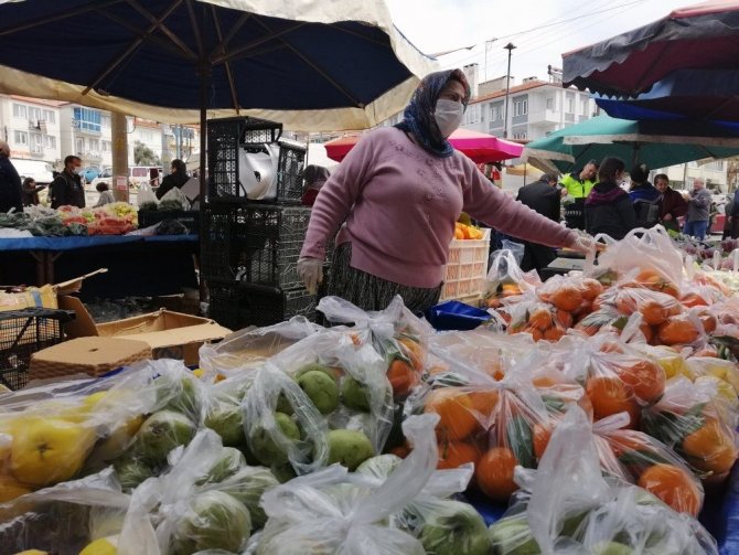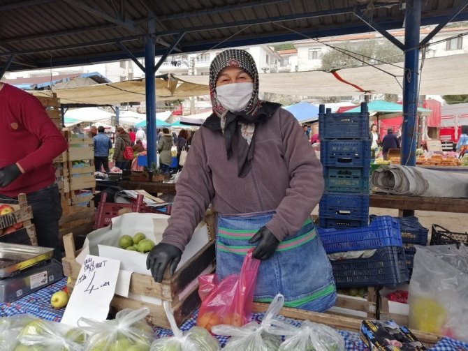 Bunun yanı sıra Muğla Büyükşehir Belediyesi’ne bağlı zabıtalar tarafından pazar girişine dezenfektan sıvı jel konuldu.
