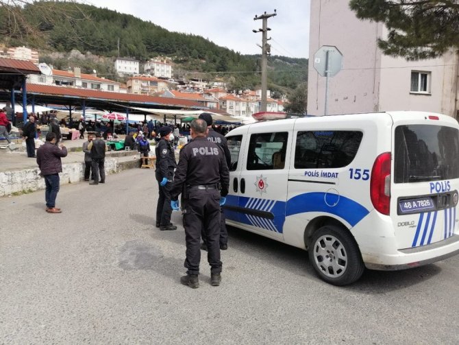 Muğla’nın Menteşe İlçesinde kurulan halk pazarında polis ve zabıta ekipleri korona virüs önlemi aldı.