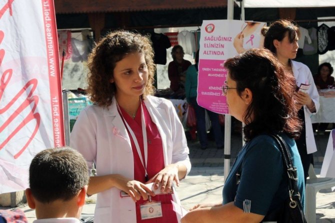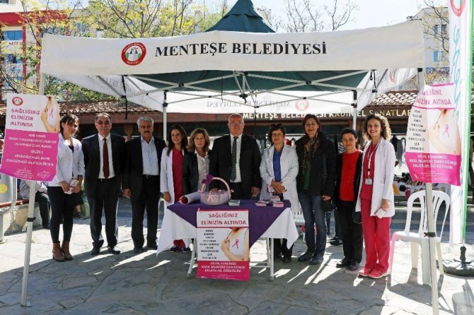 Menteşe Belediyesi, “Meme Kanseri Farkındalık Ayı” kapsamında açık pazaryerinde kurduğu stantta, kadınlara meme kanserinde erken tanı, risk faktörleri, kendi kendine muayene yöntemi hakkında bilgi ver...