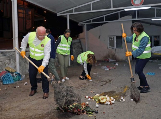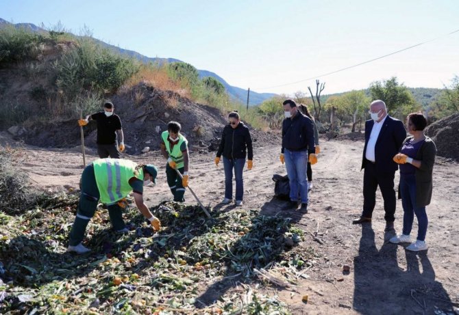 'Topraktan Toprağa Biyobozunur Atık Projesi" kapsamında Menteşe Belediye Başkanı Bahattin Gümüş, eşi ve gönüllülerle birlikte Perşembe pazarında yaş sebze ve meyve atıkları ayrıştırarak topladı. Toplanan sebze ve meyve atıkları Menteşe Belediyesi tarafından Ortaköy mahallesindeki tesislerde çevre mühendisleri eşliğinde kompostlanarak tarıma kazandırılacak.