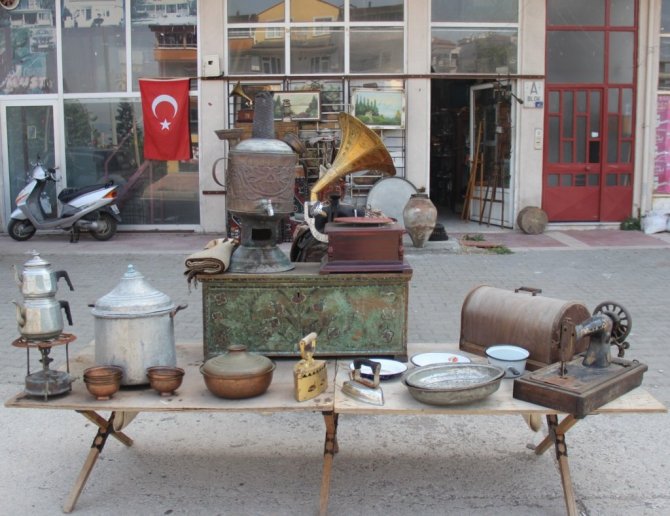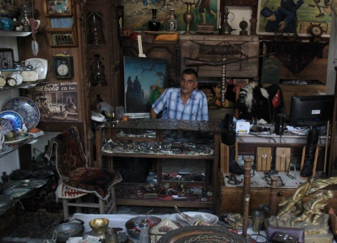 40 senedir antika işi ile uğraştığını söyleyen Arif Sami Göksün, "Çocukluktan gelen bir merakla jeton biriktirmeye başladım ve bu merak zamanla antika ürünlere de geçti. Bu ürünler elimde birikince işi ticarete döktüm. Dükkanımda yaklaşık 150-200 senelik ürünler var. Saraç malzemesinden tıbbi malzemelere, fotoğraf makinelerinden, eski saatçi ustalarının ürünlerine kadar çeşit çeşit antikalarım var. Osmanlı döneminden Cumhuriyet dönemine kadar kullanılan ürünleri topluyorum. Merakım alışkanlık haline geldi, bunu sanata çevirdik. Antikacılık hemen bakkal dükkanı açmak gibi "ürün alalım da açalım" gibi bir şey değildir" dedi.