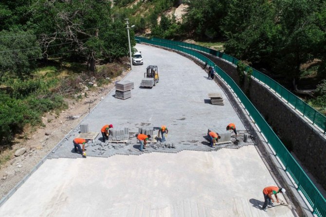 Yaz çalışma programı kapsamında ilçe genelinde aynı anda çok sayıda ekiple çalışmalarını sürdüren Meram Belediyesi Fen İşleri Müdürlüğü'ne bağlı ekipler, ilçe merkezinde devam eden çalışmaların yanı sıra merkeze uzak mahallelerdeki çalışmalarını da hızlandırdı. Meram Belediye Başkanı Mustafa Kavuş, mahallelerin öncelikli talepleri değerlendirilerek hazırladıkları program kapsamında ekiplerin yoğun bir şekilde çalıştığını ifade etti. Uzak yakın demeden Meram'ın her bir noktasına, her bir mahallesine hizmet götürdüklerini belirten Başkan Mustafa Kavuş, "Çalışmalarımız kapsamında ekiplerimiz bu hafta Botsa, Hatunsaray, İnlice, Kavak, Gödene, Sarıkız, Çomaklı ve Kaşınhanı'nda altyapı, kumlama, satıh kaplama, asfalt, parke, bordür çalışmalarına devam ediyor. Sarıkız mahallemizin giriş yolunda sıcak asfalt çalışması tamamlandı ve hemşehrilerimiz konforlu bir ulaşım imkanına kavuştu. Merkezdeki yollarımızdan farkı kalmadı. Botsa'da parke çalışmaları, Hatunsaray ve İnlice'de kumlama çalışması, Kavak'ta satıh kaplama altyapı çalışması devam ediyor. Ekiplerimiz buradaki çalışmalarını tamamlayınca program ve iş sırasına göre diğer mahallelerimizde çalışmaya, hemşehrilerimizin taleplerini yerine getirmeye devam edecek. Tüm bu çalışmalarımızla Meram'ın hangi mahallesinde yaşıyor olursa olsun hemşehrilerimizin yaşam standardını daha da yükseltmek adına çalışmaya devam ediyoruz. Elbette yapılan çalışmaları hiçbir zaman yeterli görmüyoruz. Merkezde yaşayan hemşehrilerimizin yararlandığı imkanlardan merkeze uzak mahallelerimizdeki hemşehrilerimizin de yararlanabilmesi adına imkanlarımız ölçüsünde çalışmaya devam edeceğiz" diye konuştu.