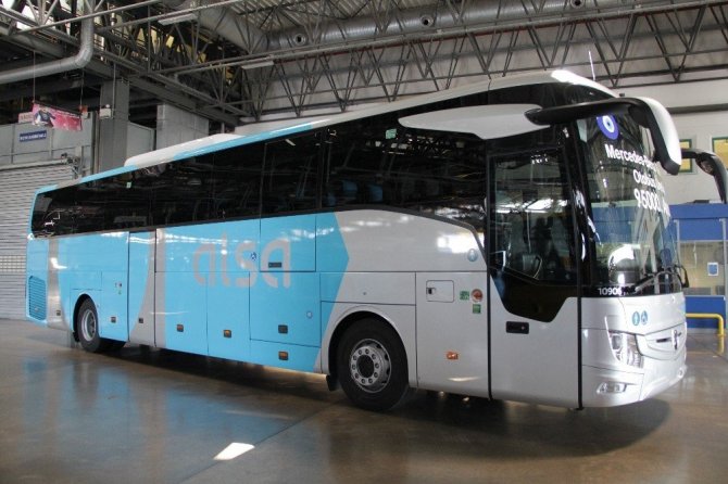 Türkiye’nin yabancı sermayeli en büyük şirketlerinden biri olan Mercedes-Benz Türk, üretime başladığı 1968 yılından bu yana toplam 95 bin adet otobüs ürettiğini açıkladı. Verilen bilgiye göre, 95 bininci otobüs olan yeni Tourismo, dünyanın en modern ve entegre otobüs fabrikalarından biri olarak kabul edilen Mercedes-Benz Türk Hoşdere Otobüs Fabrikası’ndaki üretim ve kalite kontrol süreçlerini tamamlayarak İspanya’ya doğru yola çıkıyor. Hoşdere Otobüs Fabrikası’nda üretilmiş olan otobüsün öne çıkan özellikleri arasında engelli yolcular için bulundurulan lift ve 394 beygir gücündeki Euro VI motorunun yanı sıra en ileri güvenlik sistemleri olan araç mesafe takip, acil fren ve şerit takip sistemleri yer alıyor.