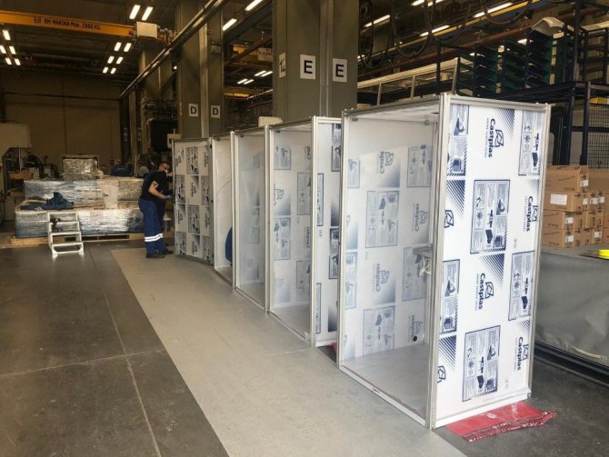 Mercedes-Benz Türk, yeni tip koronavirüs COVID-19 salgını sebebiyle oluşan medikal ürün ihtiyacını karşılamak üzere pleksi kabinlerin üretimine başladı. Şirketten yapılan açıklamaya göre Sağlık Bakanlığı’ndan onaylı pleksi kabinler, yeni tip koronavirüs (COVID-19) hastaların tedavisinde kullanılacak. İlk aşamada 100 adet entübasyon kabini ve 50 adet numune kabini üretilirken bu ekipmanlar, Sağlık Bakanlığına bağışlanıyor. Üretilen kabinlerin teslimatı ihtiyaç duyulan hastanelere Sağlık Bakanlığınca gerçekleştiriliyor. Bu kabinler, tedavi sürecinde sağlık çalışanlarının yeni tip koronavirüse (COVID-19) karşı korunmasında önemli bir görev görüyor.