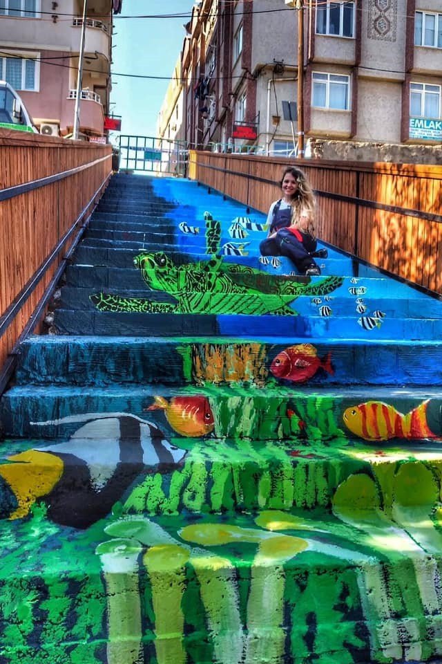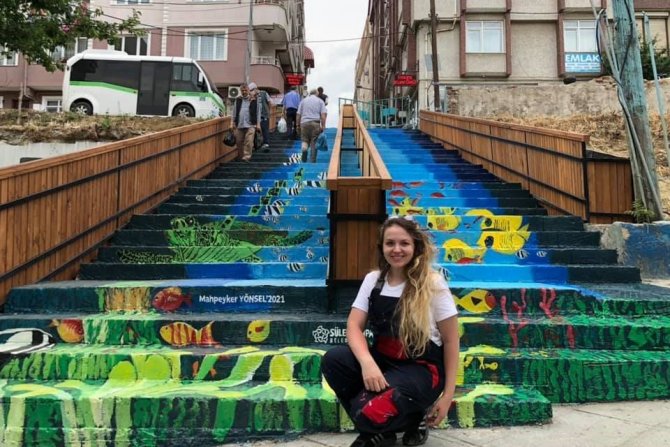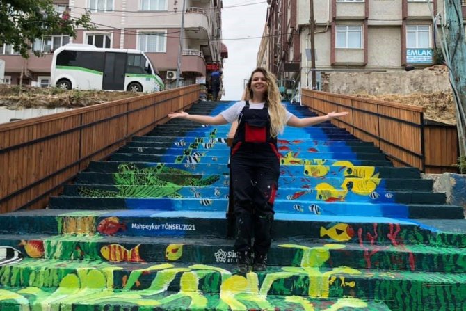 Tekirdağ Namık Kemal Üniversitesi Güzel Sanatlar, Tasarım ve Mimarlık Fakültesi Resim Bölümü Öğretim Görevlisi ve Resim Sanatçısı Doç. Mahpeyker Yönsel tarafından merdivenlere yapılan resimler görenlerin beğenisini kazanıyor.