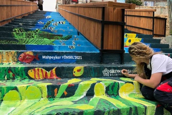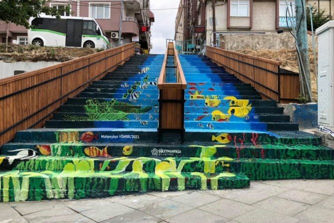 Süleymanpaşa Belediyesi, Tekirdağ Namık Kemal Üniversitesi katkılarıyla şehrin birçok noktasında bağlantı işlevi gören merdivenleri sanatla buluşturmaya devam ediyor.