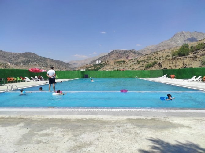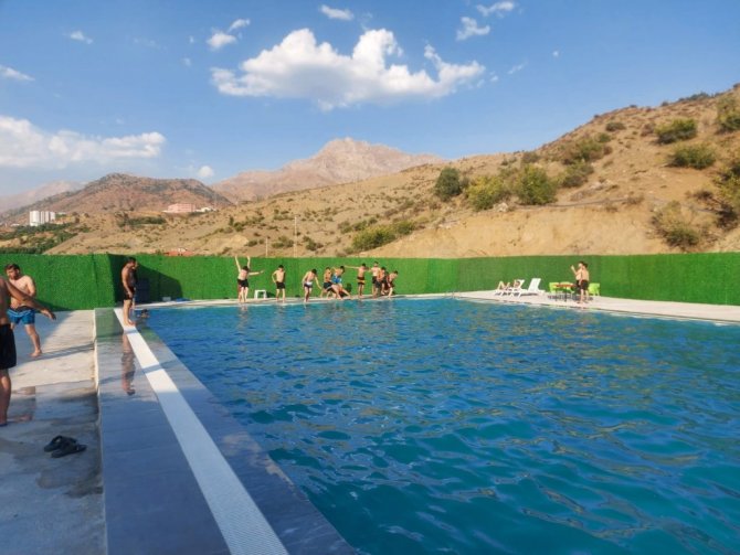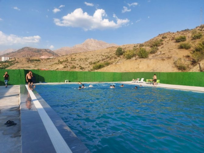 Batman'ın 3 bin rakımlı Mereto Dağı eteklerindeki Sason ilçesinde yapımı tamamlanan tam kapasiteli yüzme havuzu hizmete açıldı.