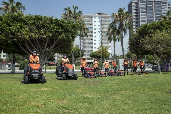 Mersin Büyükşehir Belediyesinden yapılan açıklamaya göre, ekonomik ömrü tamamlanan ekipmanları dönüştürüp farklı alanlarda değerlendiren belediye, bir taraftan da hizmet kalitesini yeni ekipmanlarla güçlendiriyor. Kültür Park başta olmak üzere kentin her noktasında parkları ve bahçeleri güzelleştiren Büyükşehir personeli, çim biçme işleminde kullanılmak üzere alınan 106 yeni makineyi sahaya sürdü.