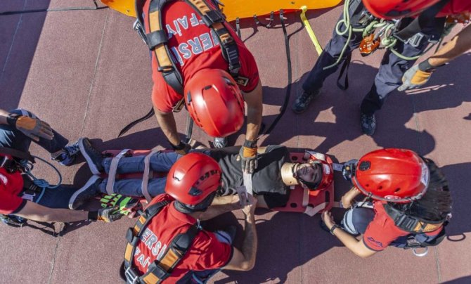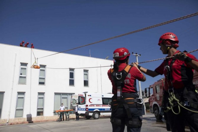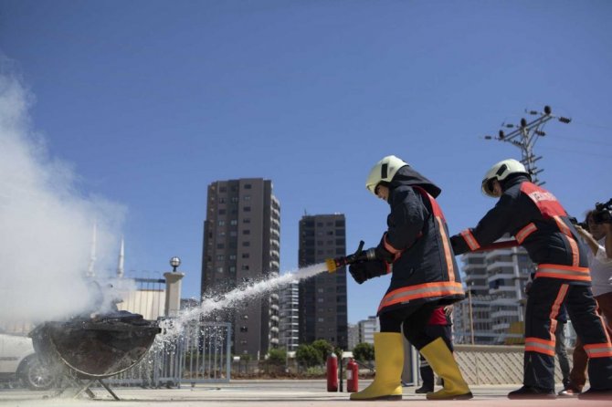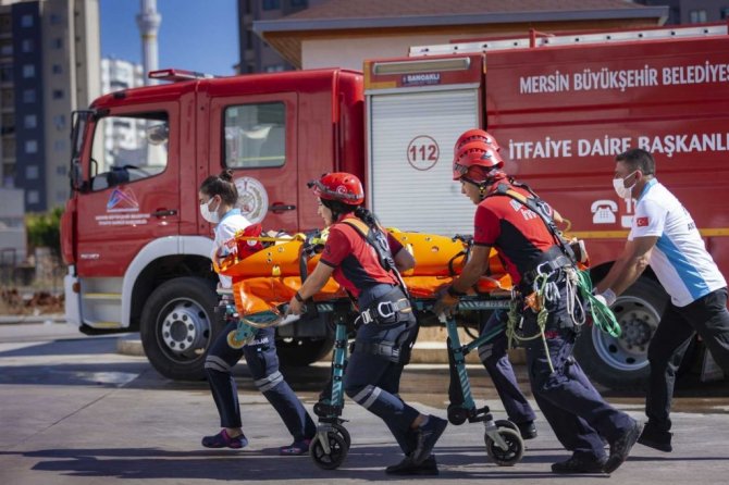 Mersin Büyükşehir Belediyesine bağlı itfaiye ekiplerince gerçekleştirilen yangın tatbikatı gerçeğini aratmadı. İple ve merdivenle erişim tekniği ile yaralı kurtarma ve yangın söndürme müdahalesinin yapıldığı tatbikatta, kadın itfaiye personeli de görev aldı.