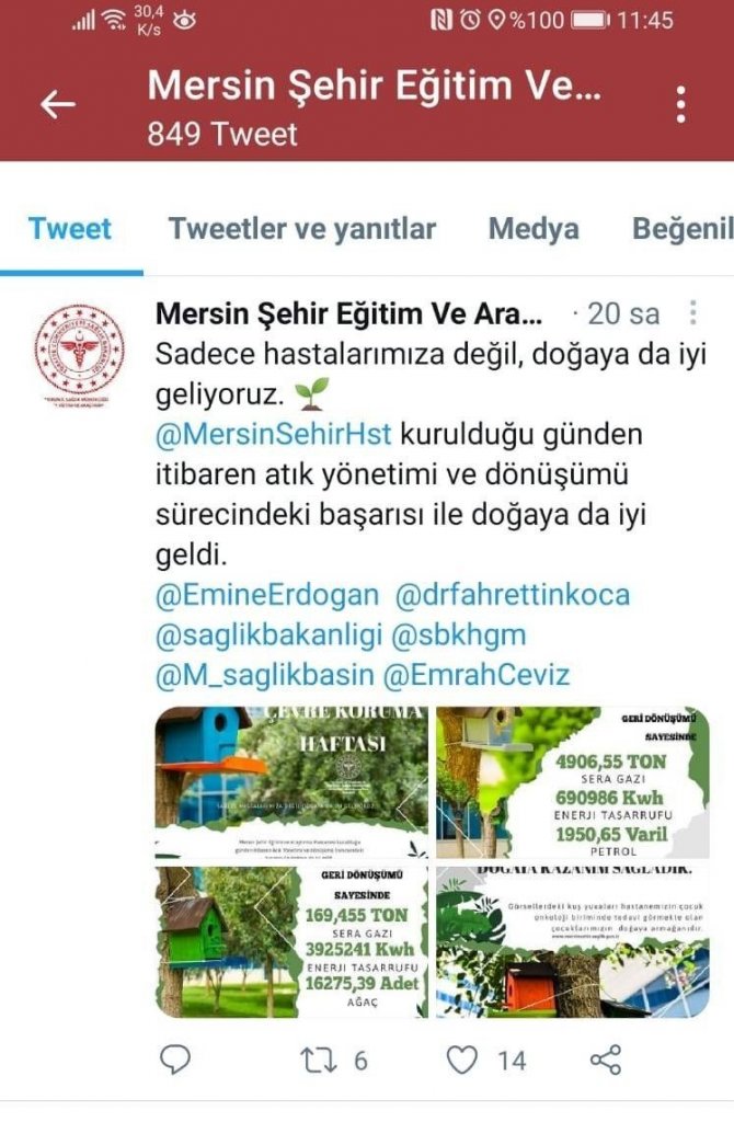 Türkiye'nin ilk şehir hastanesi olarak 2017 yılı Şubat ayında hizmete giren Mersin Şehir Eğitim ve Araştırma Hastanesi, kurulduğu günden itibaren atık yönetimi ve dönüşümü sürecindeki başarısı ile sağlık hizmetlerinin yanı sıra doğaya da katkı veriyor.