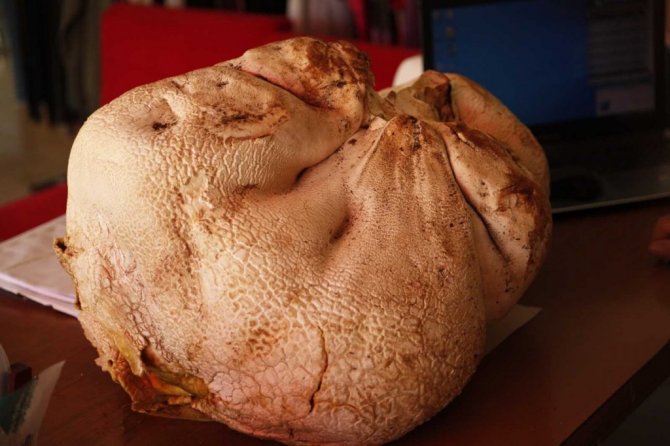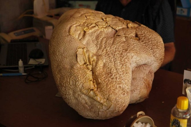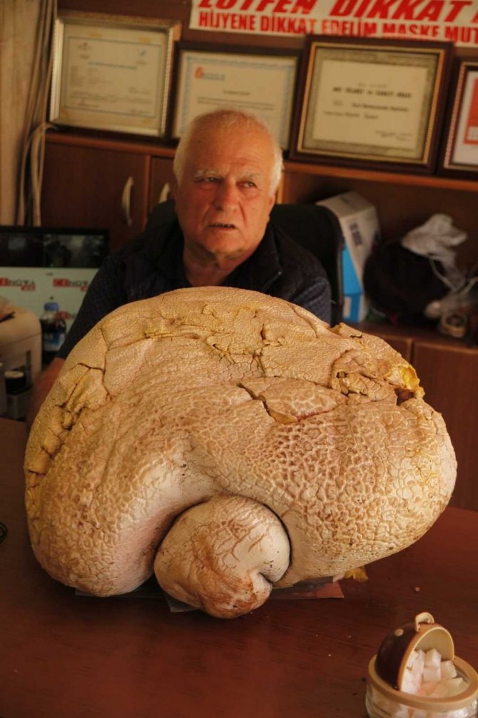 Sezer, mantar toplamak için ilçeye bağlı yayla mahallelerindeki 2 bin rakımlı dağlara çıktığını belirterek, "Gezerken kayaya benzer bir cisim fark ettim. Yanına gidip incelediğimde bunun büyük bir mantar olduğunu fark ettim. Mantardan iyi anlarım yenen mantar. Tarttım 23 kilo geldi" dedi.