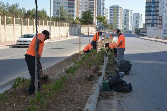Mersin Büyükşehir Belediyesi Park ve Bahçeler Dairesi ekipleri, Tarsus ilçesi Ümit Yaşar Oğuzcan Bulvarı üzerinde yürüttüğü yeşillendirme çalışması...