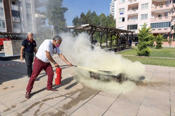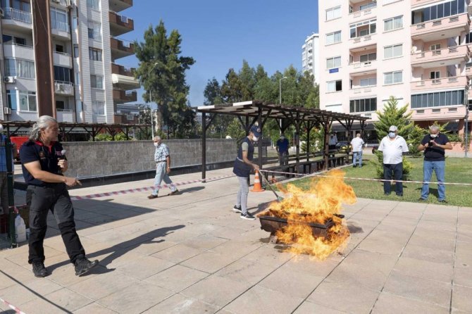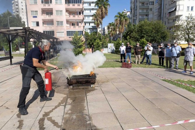 Mersin’de ’Emekli Evi’ sakinlerine yangın söndürme eğitimi verildi