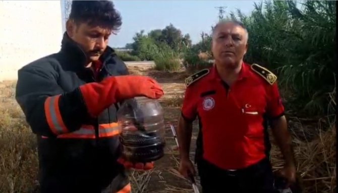 Edinilen bilgiye göre, merkez Mezitli ilçesi Davultepe Mahallesi'nde bir eve giren yılan, ev sahibinin talebi üzerine itfaiye ekiplerince zarar görmeden yakalandı. Yaklaşık 2 metre boyunda olan yılan, plastik bir şişeye konularak Davultepe İtfaiye Grup Amirliği ekiplerince doğal yaşam alanına bırakıldı.