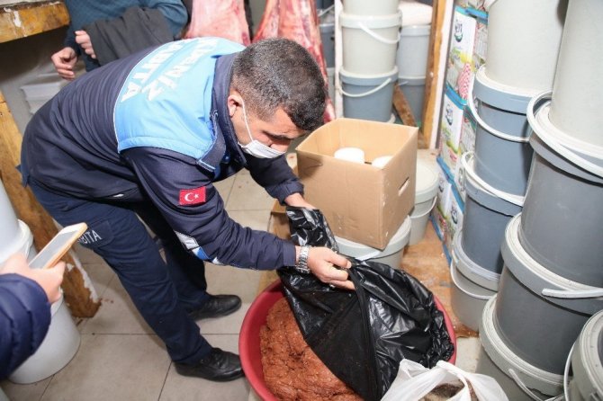 Soğuk hava deposunda ayrıca, kokuşmuş ve bozulmuş 90 kilogram peynir de ele geçirilirken, işletmenin mutfak kısmında ise yaklaşık 266 kilogram rengi ve kokusu değişmiş salça gören ekipler, imha için hepsine el koydu.