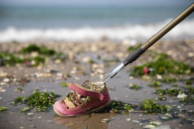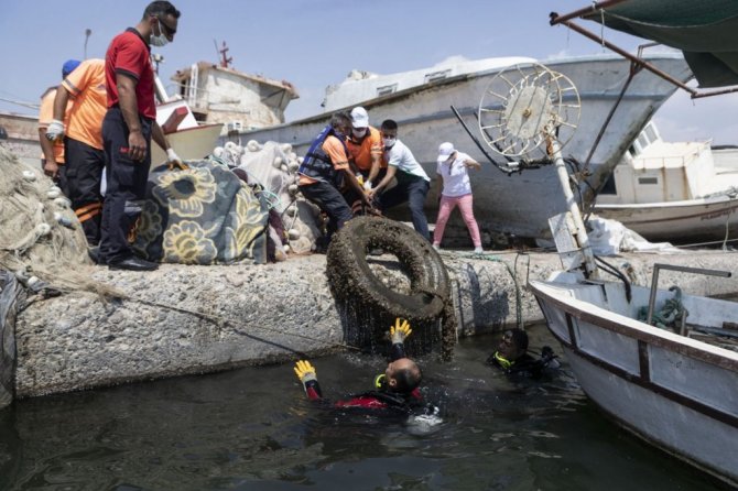 Mersin Büyükşehir Belediyesince, 5-11 Haziran Dünya Çevre Günü ve Çevre Haftası etkinlikleri kapsamında Karaduvar sahilinde temizlik çalışması yapılırken, denizden çıkarılan çöpler sergilendi.