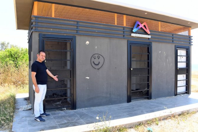 Mersin Büyükşehir Belediyesince sahilde vakit geçirmeye gelen vatandaşların kullanımı için inşa edilen tuvaletler ve personelin kullandığı odaların kimliği belirsiz kişilerce tahrip edildiği bildirildi.