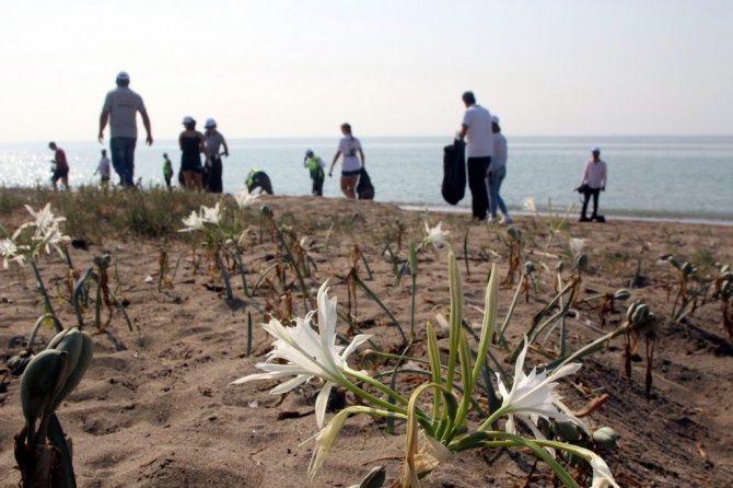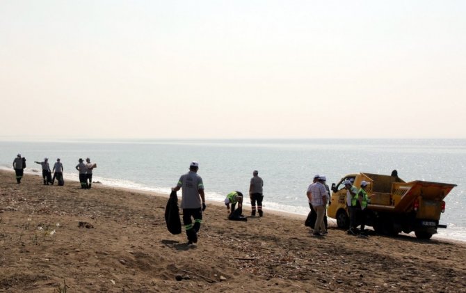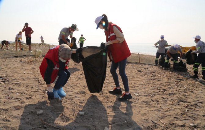 Yüzlerce metre uzunluğundaki Kazanlı sahiline vuran tarımsal ve balıkçılık atıkları ile piknikçilerin bıraktığı atıkların yanı sıra, Suriye'ye ait Akdeniz kıyısında bulunan bir enerji santralinden sızarak Kazanlı sahillerine ulaşan petrol atıkları da dikkatle toplandı. Toplanan poşetler dolusu çöp ve atıklar, bertaraf tesisine ulaştırılmak üzere çöp taksiye yüklenerek sahilden çıkarıldı.