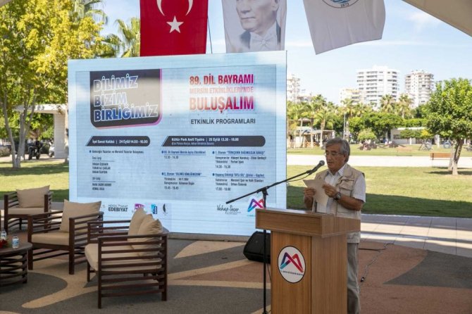 89. Türk Dil Bayramı etkinlikleri kapsamında düzenlenen Mersin Türkçe Günleri programı, Kültür ve Sosyal İşler Daire Başkanlığı Koordinatörü Bengi İspir Özdülger, İçel Sanat Kulübü Başkanı Mecit Baskın, Mersin Sanat, Edebiyat Derneği Başkanı Erkan Özaydın, Akdeniz Sanat Oluşumu Dönem Sözcüsü Fatma Saadet Bilir ve Dil Derneği Temsilcisi Hidayet Karakuş'un katılımıyla yapıldı.