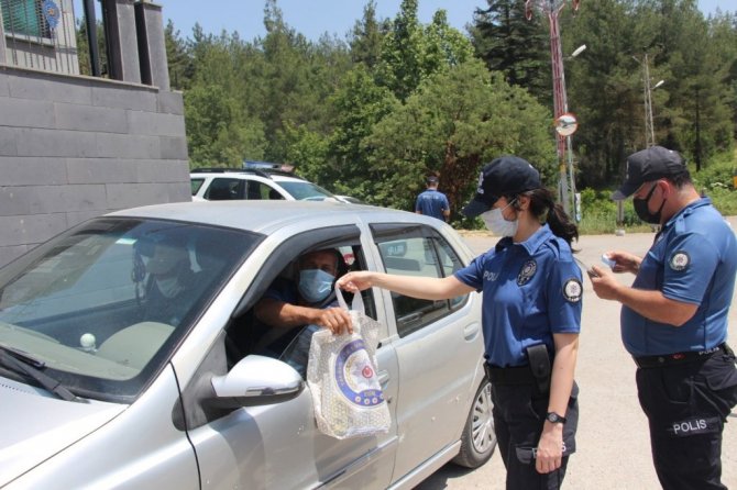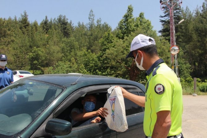 Mersin’de uygulamada durdurulan sürücülere hijyen seti hediye edildi