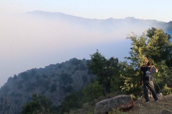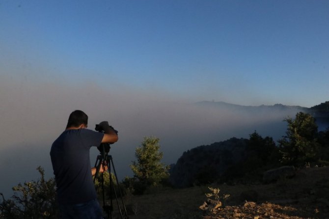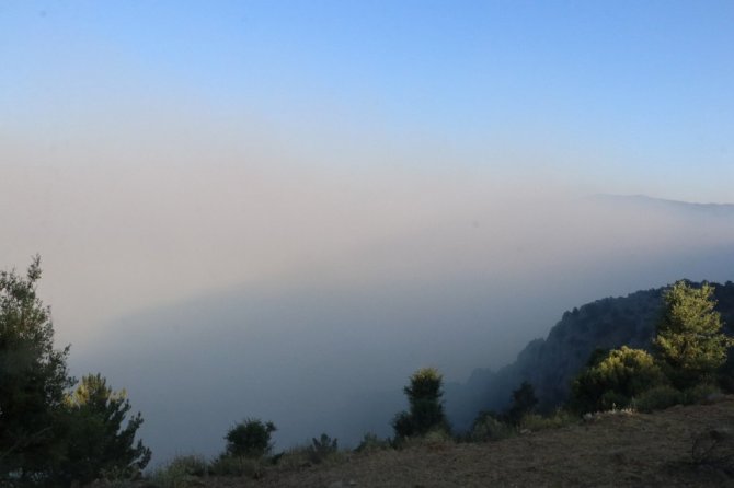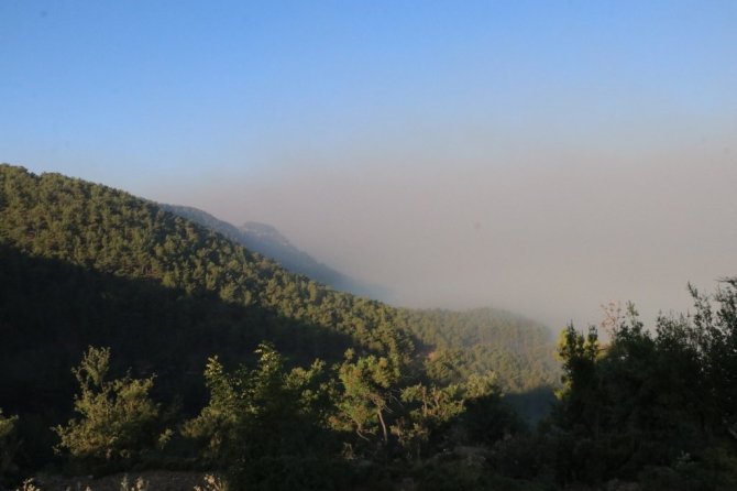 Mersin'in Aydıncık ilçesinde çıkan orman yangın devam ederken, sabahın erken saatlerinde havadan da müdahale edilmeye başlandı. Yangın bölgesinde yoğun bir duman bulutu oluşurken, görüş mesafesi sıfıra kadar düştü.