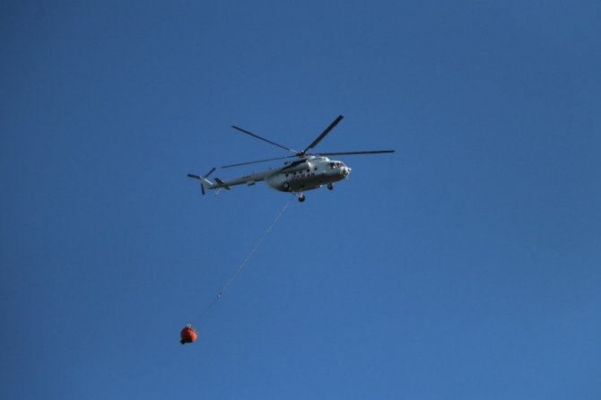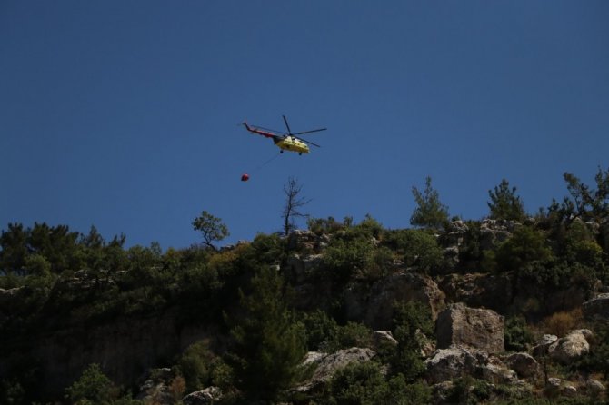 Mersin'in Aydıncık ilçesinde çıkan orman yangın devam ederken, sabahın erken saatlerinde havadan da müdahale edilmeye başlandı.