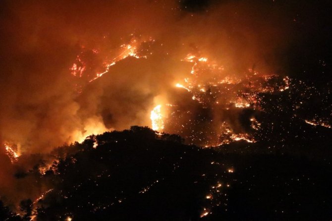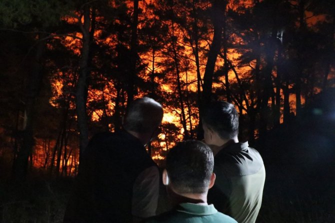 Mersin'in Aydıncık ilçesinde çıkan orman yangına, gece saatlerinde de müdahale edilmeye devam ediliyor. Tarım ve Orman Bakanı Bekir Pakdemirli'de yangın bölgesinde incelemelerde bulunurken, yetkililerden son durum hakkında bilgi aldı. Pakdemirli, "Yangının kontrol altına alındığını diyemiyoruz" dedi.