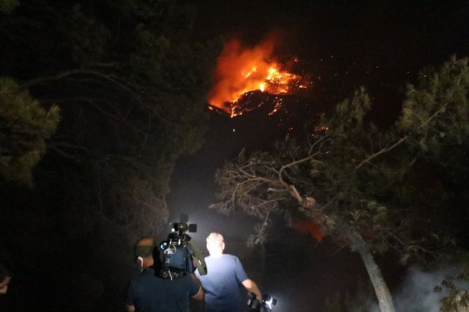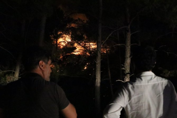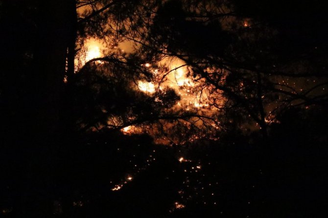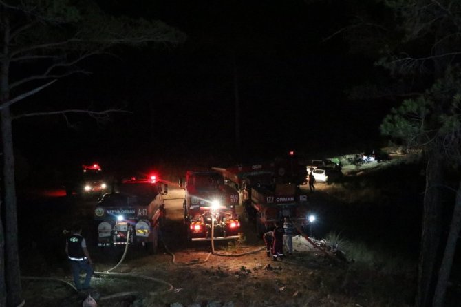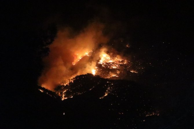 Mersin'in Aydıncık ilçesinde çıkan orman yangına, gece saatlerinde de müdahale edilmeye devam ediliyor.
