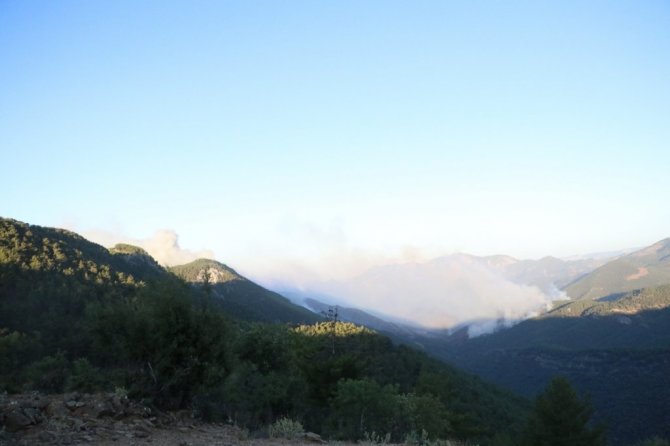 Dün sabah saatlerinde Mersin'in Aydıncık ilçesi Pembecik Mahallesinde çıkan orman yangını devam ediyor. Gündüz saatlerinde havadan uçak ve helikopterler yangına müdahale edilirken, akşam saatlerinden, sabahın ilk ışıklarına kadar karadan müdahale sürdü. Büyük bir alanda devam eden yangına sabah saatlerinde yeniden havadan müdahale edilmeye başlandı. Helikopterler havadan çeşitli yerlere müdahaleyi sürdürürken, yangın kontrol altına alınmaya çalışılıyor.