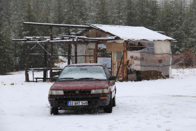 Mersin'in yüksek rakımlı bölgelerine lapa lapa kar yağdı, bin 500 rakım üzeri beyaza büründü. Kar yağdığını duyanlar ise bölgeye giderek keyfini çıkardı.