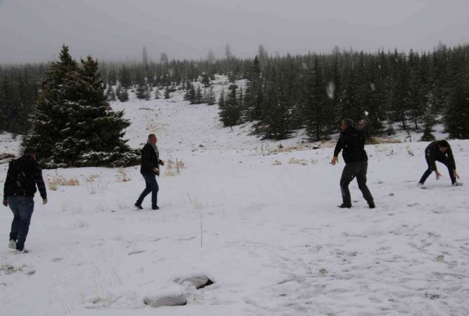 Kar altında arkadaşlarıyla piknik yapmaya geldiğini ifade eden Faruk Danacı ise kar yağmasını aylardır beklediklerini dile getirdi.