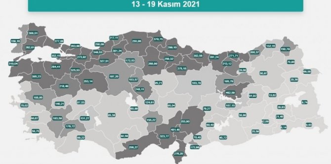 Birinci ve ikinci dozda yüksek aşılanma oranlarıyla dikkat çeken ve mavi iller kategorisinde yer alan Mersin'de, aşıya güvenme rehaveti, rehavet özellikle maske kullanmamayı, kurallara uymamak da korona virüs (Covid-19) vakalarının artmasını beraberinde getirdi. Sağlık Bakanı Fahrettin Koca'nın paylaştığı bir haftalık insidans haritasında, 13-19 Kasım arasında 100 bin kişide bir haftalık toplam yeni Covid-19 vaka sayısı en çok artan 10 il arasında Mersin'de yer aldı. Mersin'de 13-19 Kasım arasında 100 bin kişide vaka sayısı 256,27 oldu.