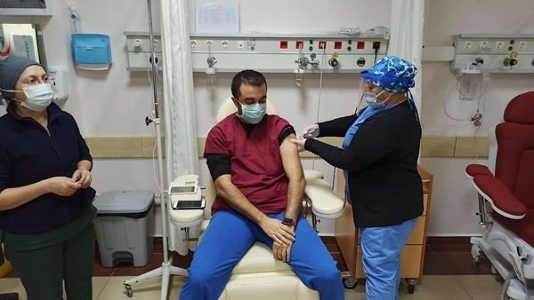 Çin'den Türkiye'ye getirilen Kovid-19 aşıları, risk grubu öncelikli olmak üzere Merzifon Kara Mustafa Paşa Devlet Hastanesi'nde sağlık çalışanlarına uygulanıyor. Kara Mustafa Paşa Devlet Hastanesi Başhekimi Uzm. Dr. Selçuk Sezikli, Çin'den getirilen ve dün Sağlık Bakanı Fahrettin Koca ile Bilim Kurulu üyelerine yapılan Kovid-19 aşısının Merkezi Hekim Randevu Sistemi (MHRS) üzerinden aşı randevusunu alan sağlık çalışanlarının, aşılanmaya başlandığını ifade etti.