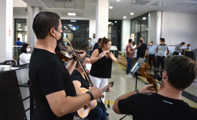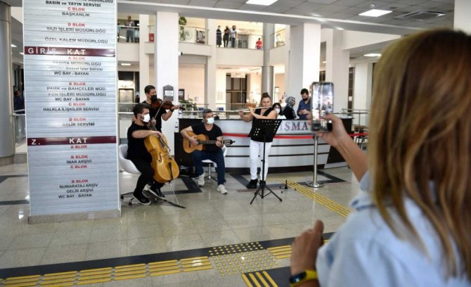 Kepez Belediye personeli haftanın ilk mesai gününe mini konserle başladı. Türkiye Müzisyenler ve Sanatçılar Federasyonu'nun (MÜZSAN) müzisyenleri, belediye personeli ve belediyeye gelen vatandaşları mini konserle karşıladı.