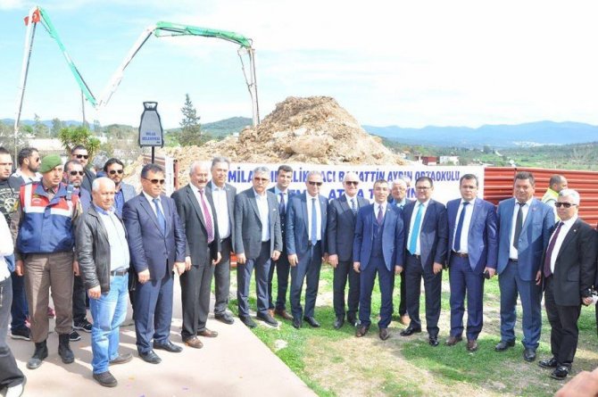 Muğla’nın Milas ilçesine bağlı Meşelik Mahallesinde hayırsever Necat Aydın tarafından babası Hacı Bahattin Aydın adına yapılacak olan 8 derslikli ortaokul binası için temel atma töreni düzenlendi.