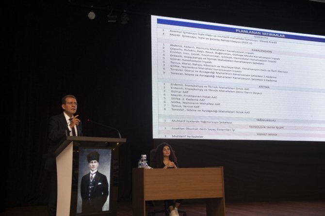 Meclis üyelerinin sorularına da tek tek yanıt vermeye devam eden Seçer, altyapı eksikliklerini gidermek için her bölgeye ulaştıklarını söyledi. Seçer, "Her bölgede yatırım yapıyoruz. Yapmaya çalışmıyoruz, yapıyoruz. Nereden yapıyoruz? Öz kaynaklarla yapıyoruz. Nereden yapıyoruz? Bulduğumuz uzun vadeli, uygun finansman maliyeti olan kredilerle yapıyoruz ya da FRIT II gibi, Avrupa Birliği'nin fonları gibi bazı enstrümanları da kullanıyoruz. Akdeniz ilçesi Toroslar Mahallesi Homurlu, Adanalıoğlu, Kazanlı. O bölgedeki kanalizasyon çalışmaları ki, 10 milyon avroluk bir hibe. Protokol ve diğer prosedürler süratle devam ediyor. İller Bankası üzerinden gerçekleşiyor. Yine FRIT II kapsamında 17 milyon avroluk Mezitli İçme Suyu Şebeke Hattının yenilenmesi var. Her şey tamam. İhaleye çıkıyoruz. Uzun süredir uğraş veriyorduk. Erdemli Tömük bölgesi, Arpaç, Tömük. O bölgedeki kanalizasyon sistemi yine orada da yaklaşık olarak 15 milyon avro civarında bir yatırımla kanalizasyon çalışmaları başlayacak. Bunlar da FRIT II kapsamında. Yani tamamı hibe. Maalesef bunlar zaman alıyor. En önemlilerinden biri Anamur Otluca Su Projesi. TL bazında yeni fiyatlarla 150 milyon liralık, yani 15 milyon avroluk bir yatırım" şeklinde konuştu.